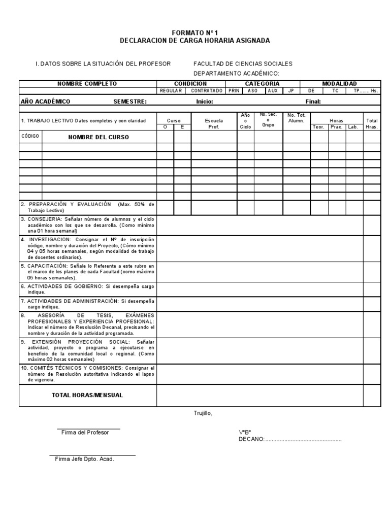 DECLARACION DE CARGA HORARIA ASIGNADA