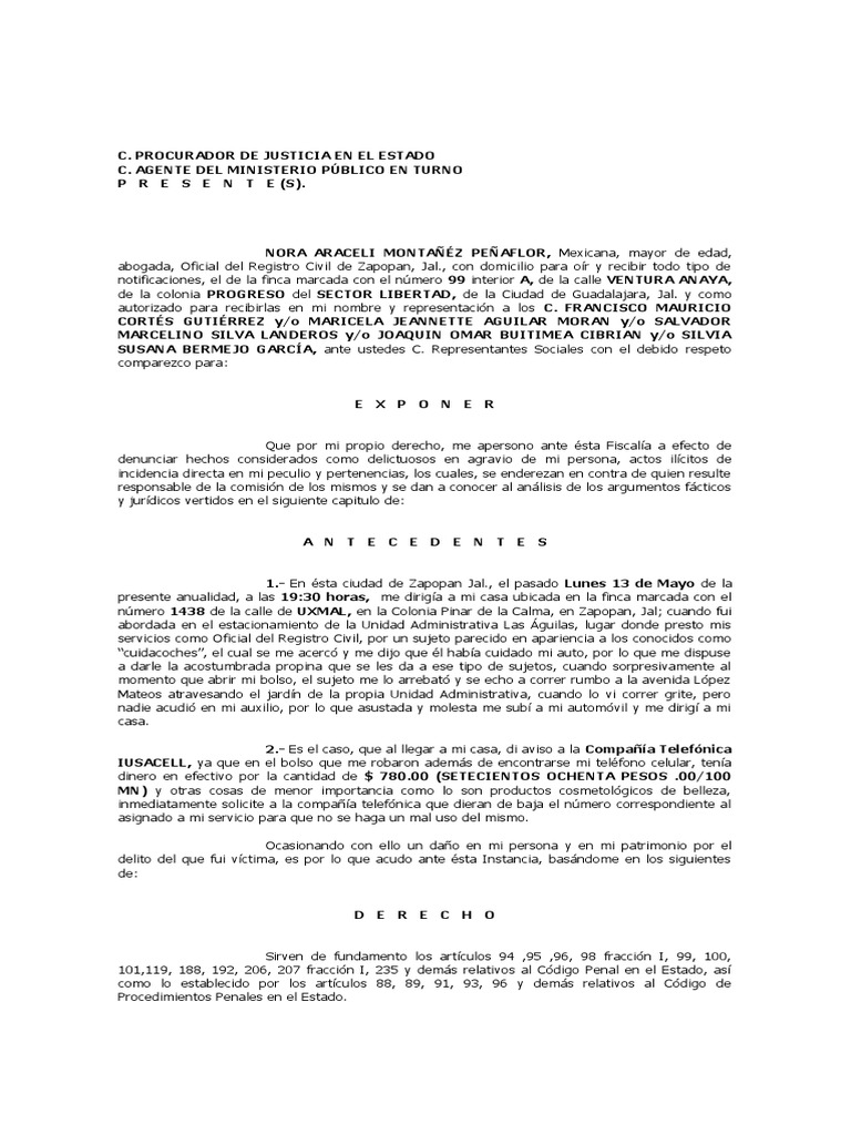 denunciar hechos considerados como delictuosos en agravio de mi persona, actos ilícitos de
