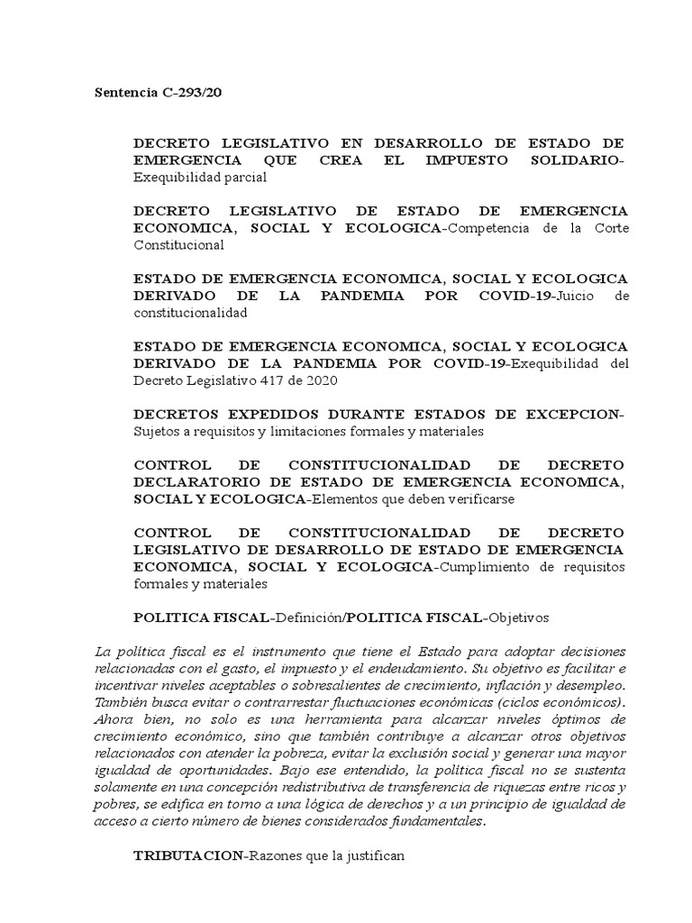 Estado (ver, por ejemplo, el fundamento jurídico No. 165), lo cierto es que el Decreto legislativo 568 de 2020 no
