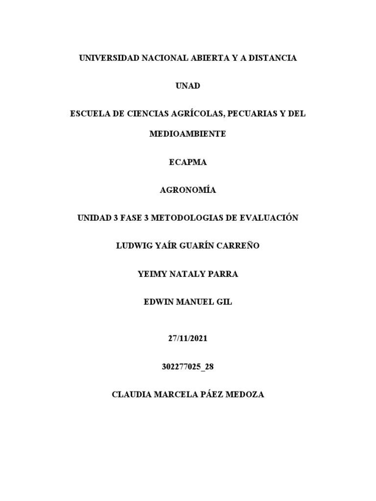 UNIDAD 3 FASE 3 METODOLOGIAS DE EVALUACIÓN