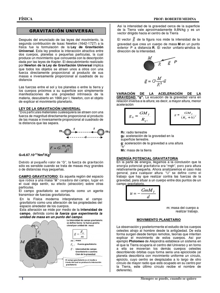 física fue la formulación de la Ley de Gravitación exterior P a distancia R. El vector unitario uindica la