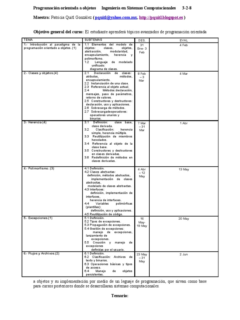 Objetivo general del curso: El estudiante aprenderá tópicos avanzados de programación orientada