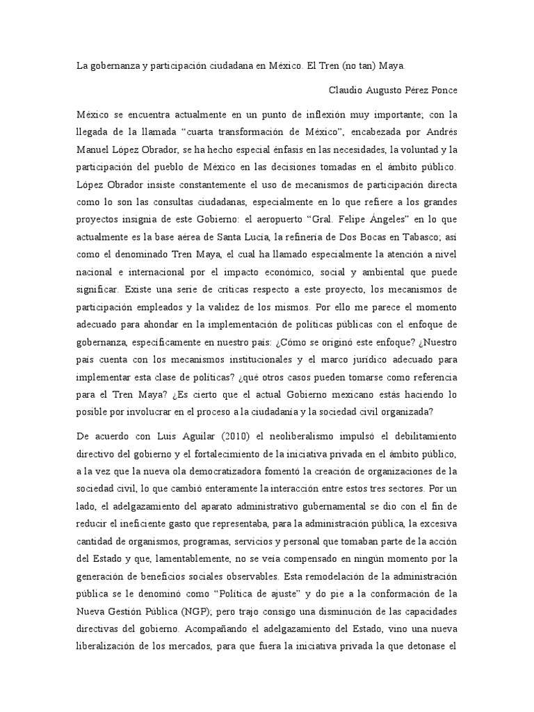 La gobernanza y participación ciudadana en México. El Tren (no tan) Maya.