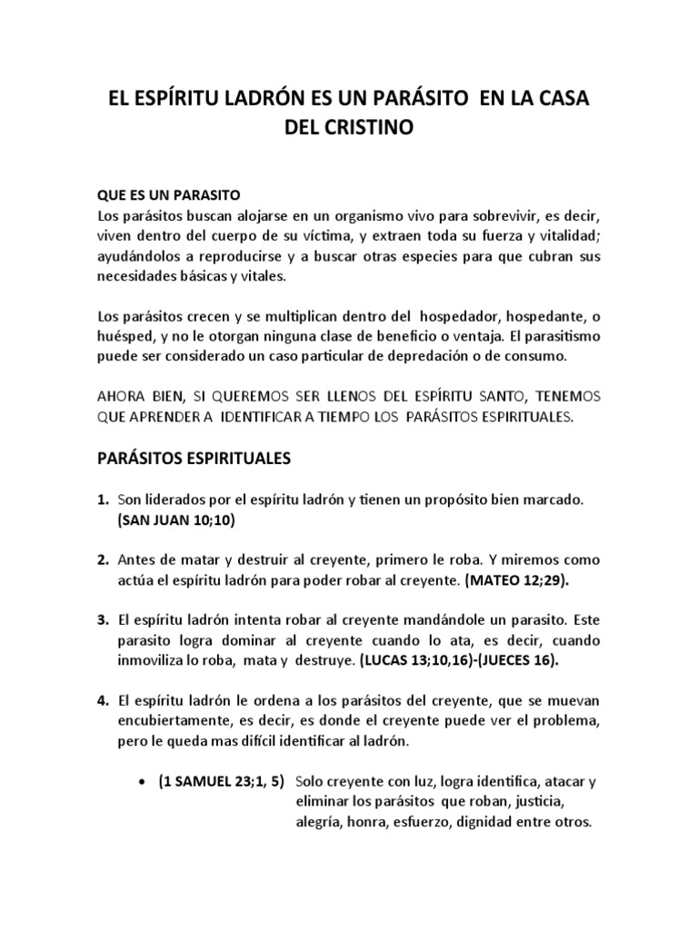 fuego del Espíritu, se pueden identificar, atacar y eliminar los parásitos