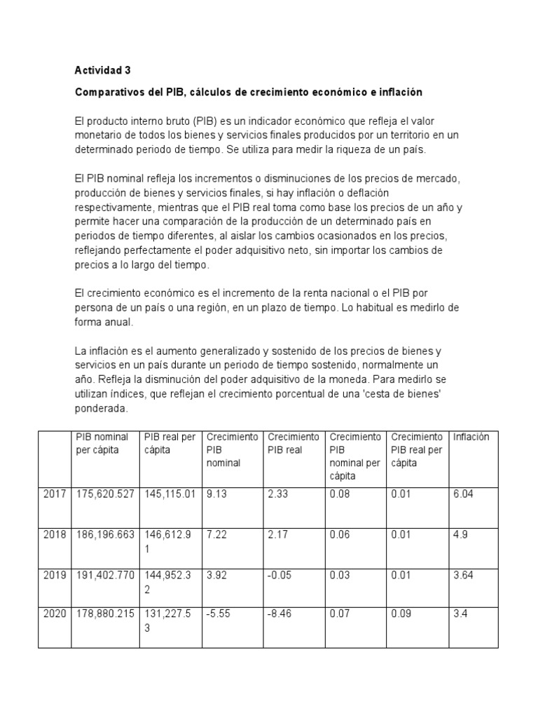 Comparativos del PIB, cálculos de crecimiento económico e inflación