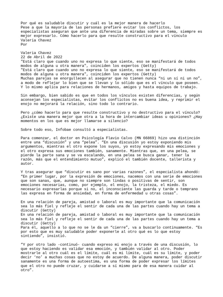 modos de alguna u otra manera -sostuvo la especialista-. No hablar para no discutir