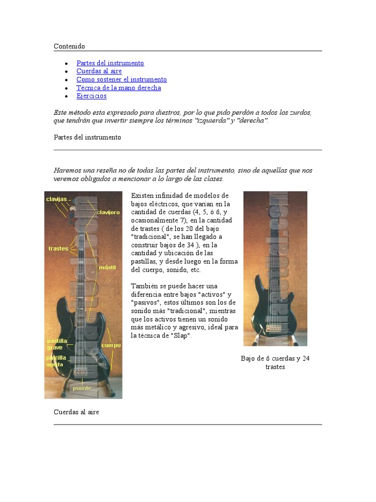 Haremos una reseña no de todas las partes del instrumento, sino de aquellas que nos