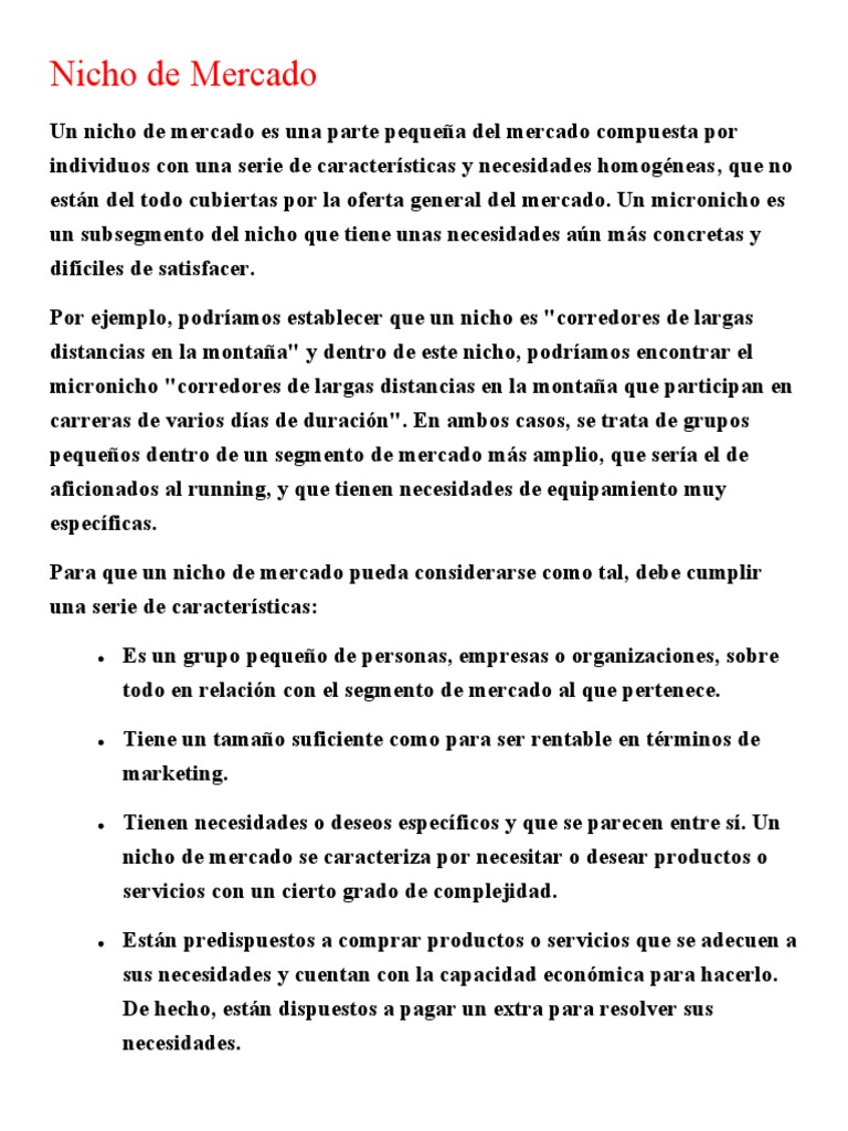 nicho de mercado se caracteriza por necesitar o desear productos o