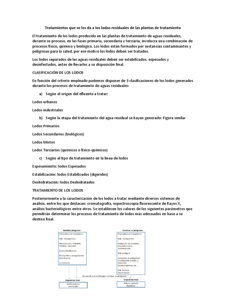 Tratamientos que se les da a los lodos residuales de las plantas de tratamiento
