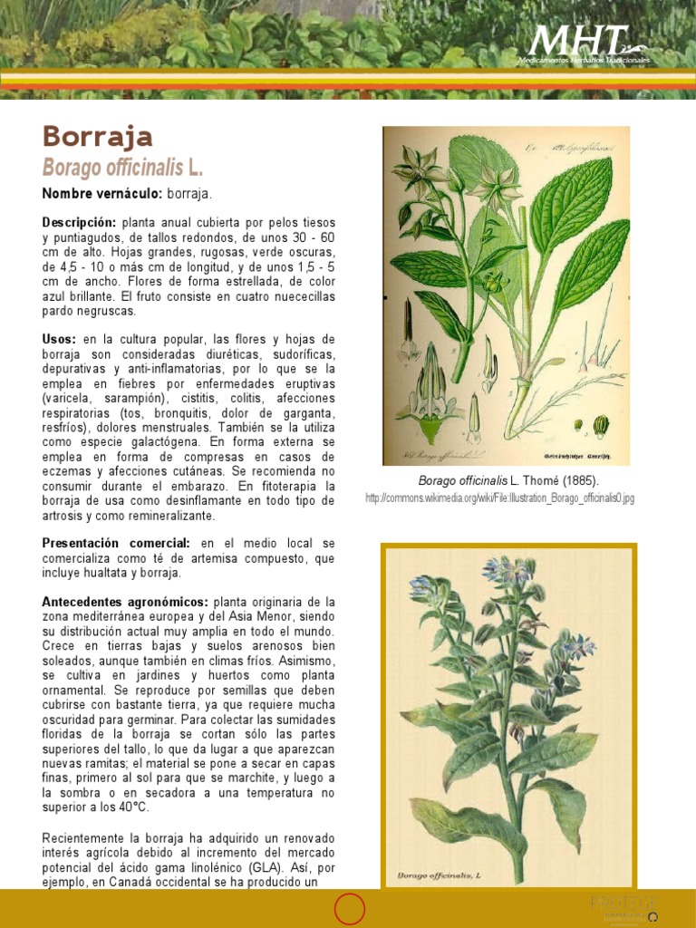 consumir durante el embarazo. En fitoterapia la Borago officinalis L. Thomé (1885).