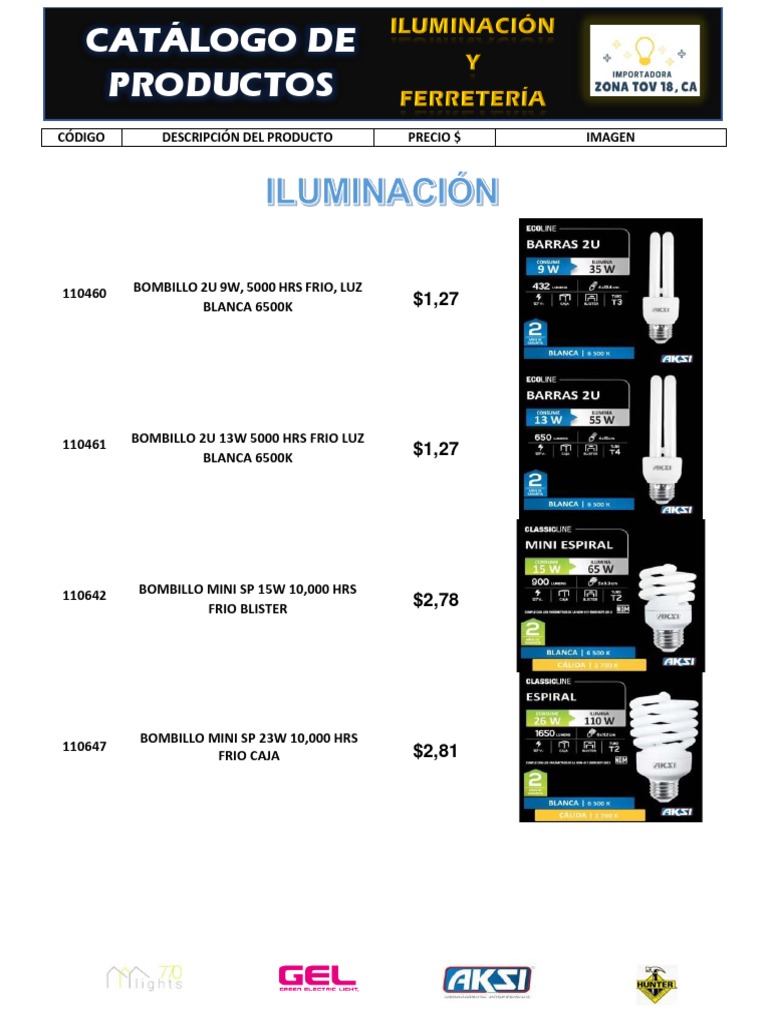 15W, 6500K, 15,000 hrs vida. L. ECO $3,66