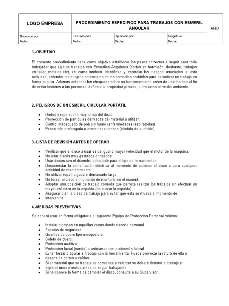 LOGO EMPRESA PROCEDIMIENTO ESPECIFICO PARA TRABAJOS CON ESMERIL