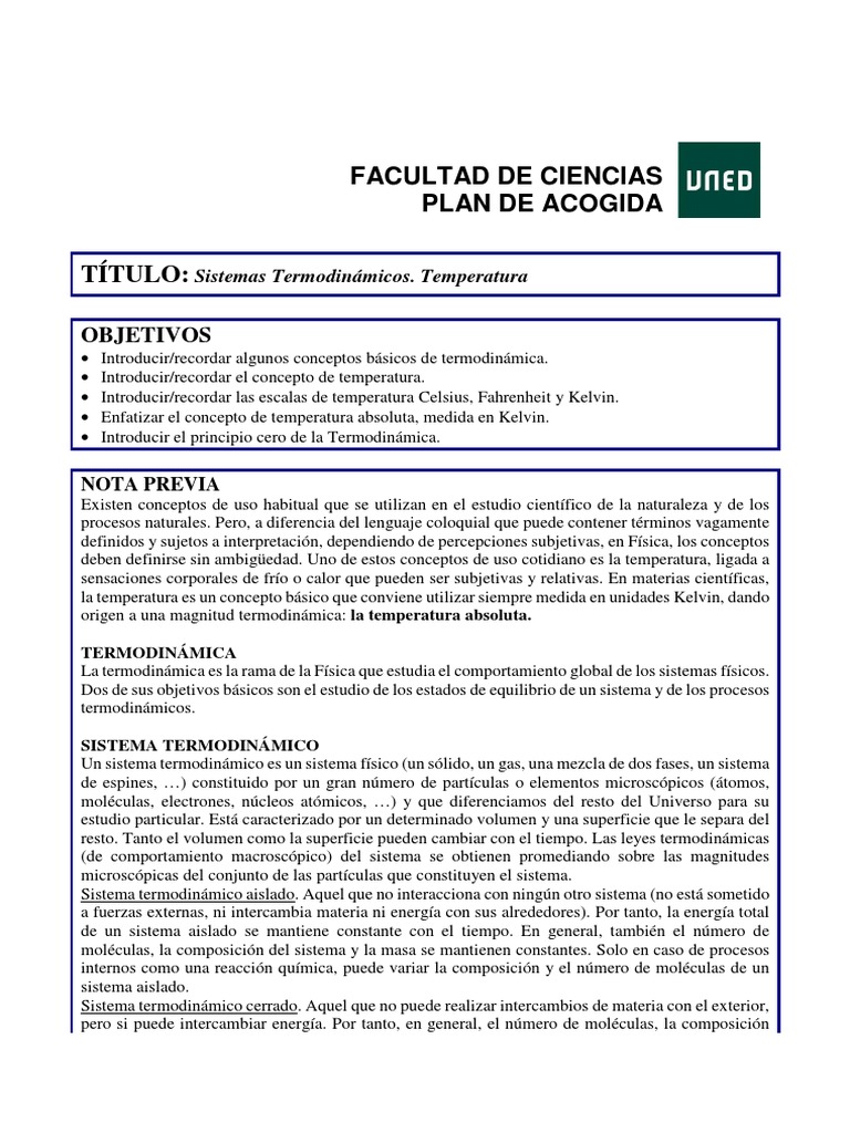 TÍTULO: Sistemas Termodinámicos. Temperatura
