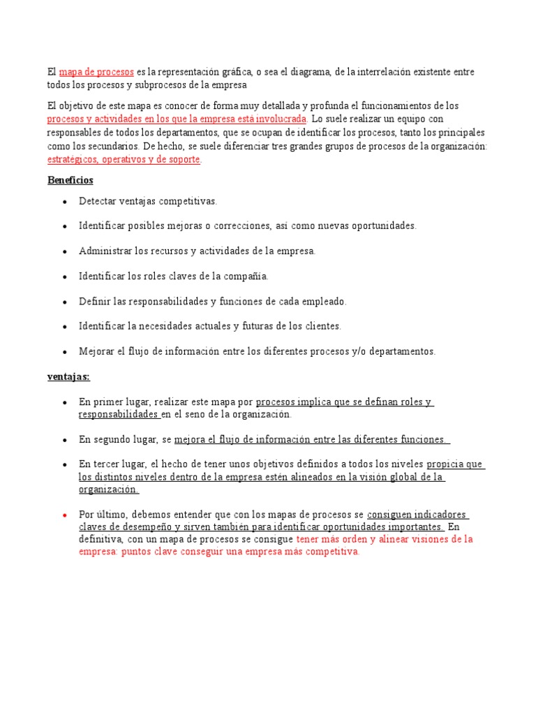 definitiva, con un mapa de procesos se consigue tener más orden y alinear visiones de la