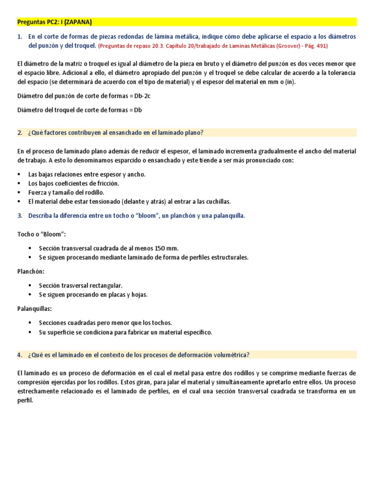 del punzón y del troquel. (Preguntas de repaso 20.3. Capítulo 20/trabajado de Laminas Metálicas (Groover) - Pág. 491)