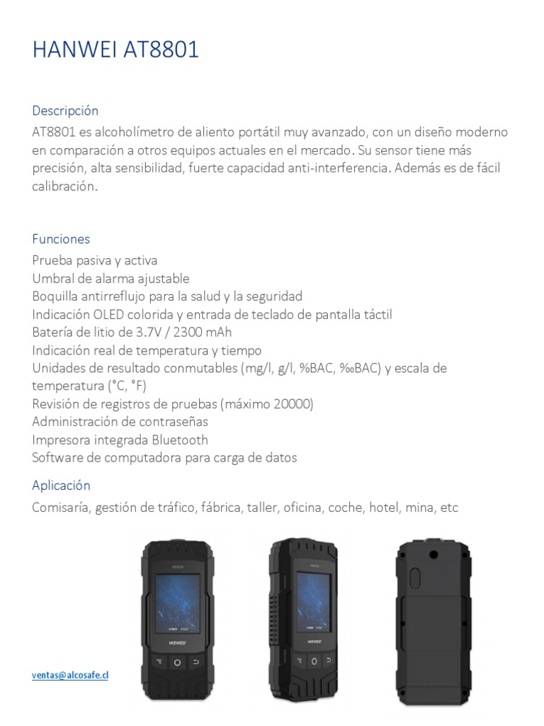 AT8801 es alcoholímetro de aliento portátil muy avanzado, con un diseño moderno