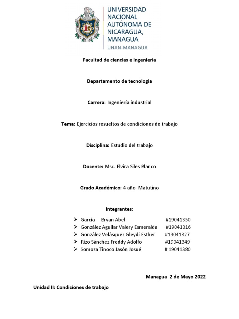 Tema: Ejercicios resueltos de condiciones de trabajo