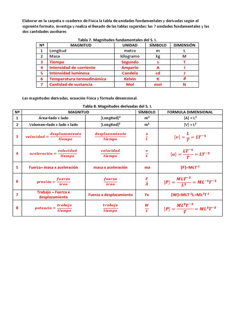 siguiente formato, investiga y realiza el llenado de las tablas sugeridas: las 7 unidades fundamentales y las