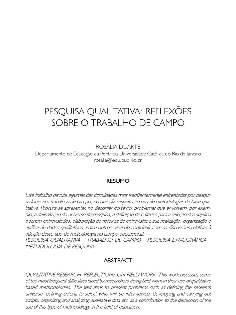 A pesquisa que gerou as reflexões trazidas neste trabalho (Duarte, 2000),