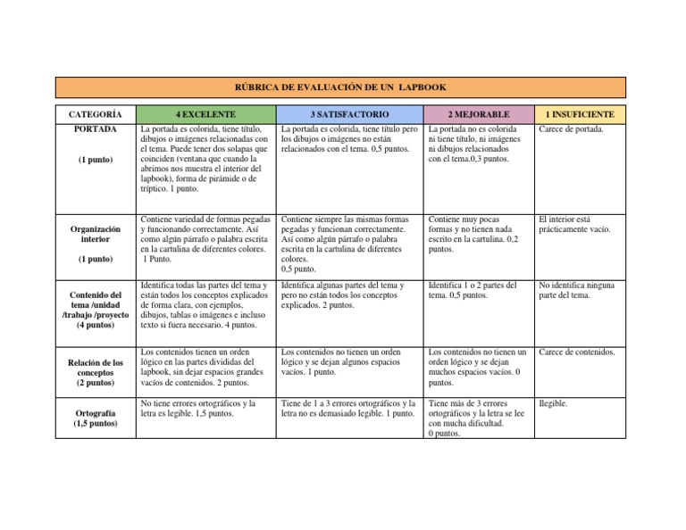 RÚBRICA DE EVALUACIÓN DE UN LAPBOOK