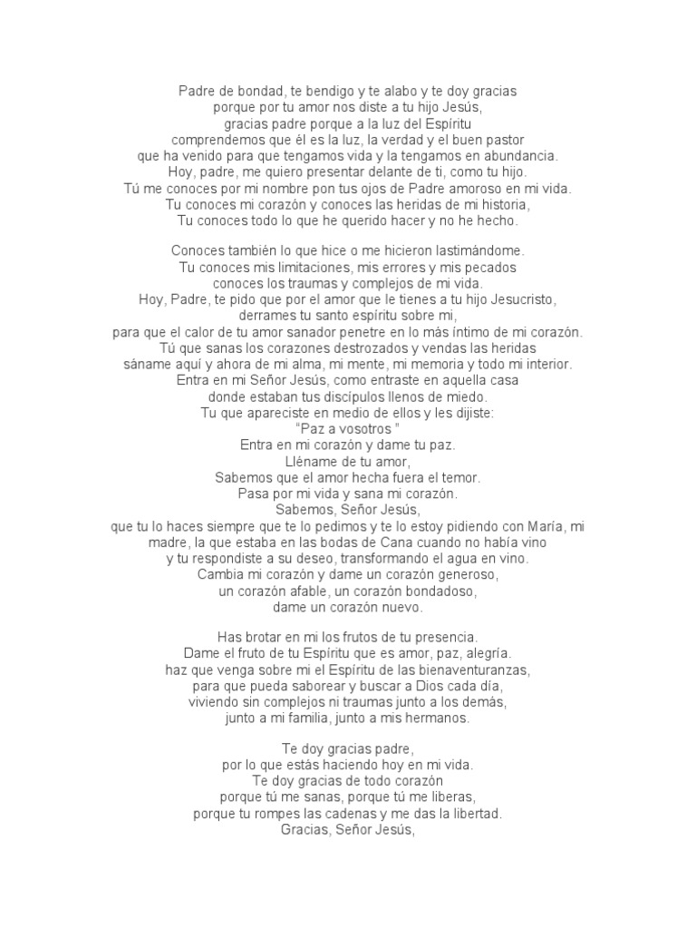 Padre de bondad, te bendigo y te alabo y te doy gracias