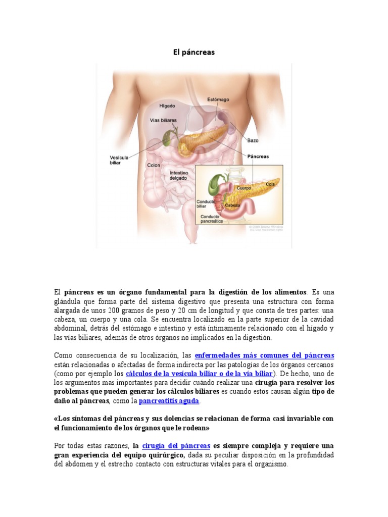 abdominal, detrás del estómago e intestino y está íntimamente relacionado con el hígado y