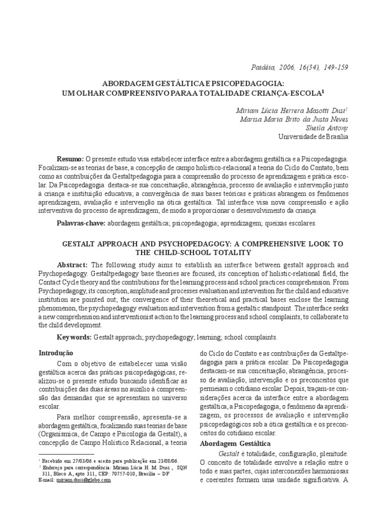 Palavras-chave: abordagem gestáltica; psicopedagogia; aprendizagem; queixas escolares.