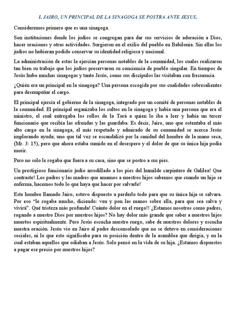 I. JAIRO, UN PRINCIPAL DE LA SINAGOGA SE POSTRA ANTE JESUS.