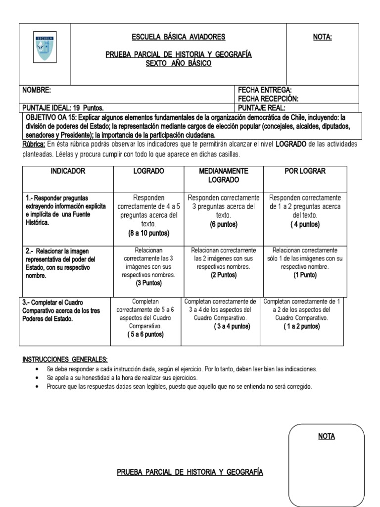 PRUEBA PARCIAL DE HISTORIA Y GEOGRAFÍA