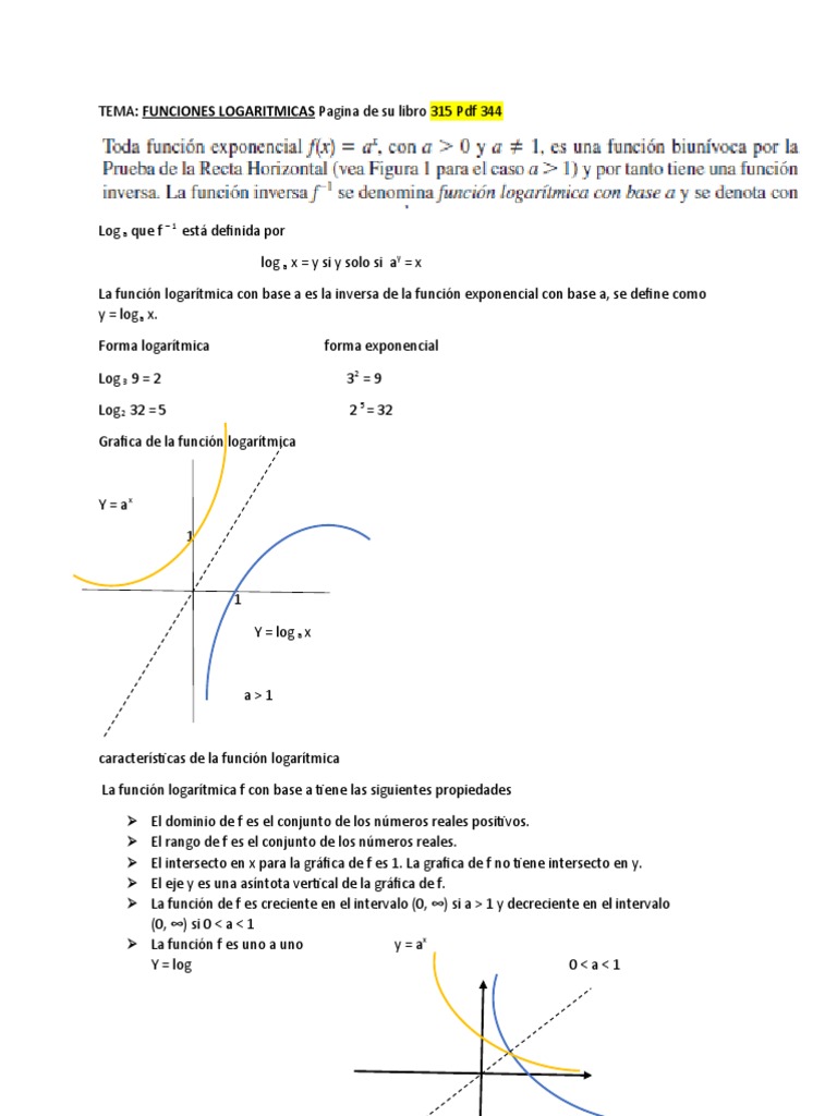 TEMA: FUNCIONES LOGARITMICAS Pagina de su libro 315 Pdf 344