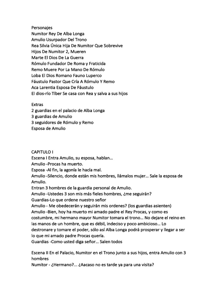 Amulio -Bien, hoy ha muerto mi amado padre el Rey Procas, y como es