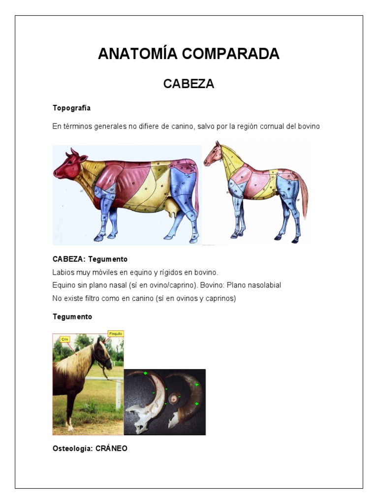 Equino sin plano nasal (sí en ovino/caprino). Bovino: Plano nasolabial