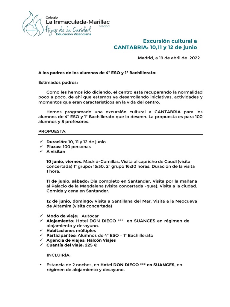 Concepto: Excursión a CANTABRIA (10,11 y 12 de junio) + (nombre del alumno