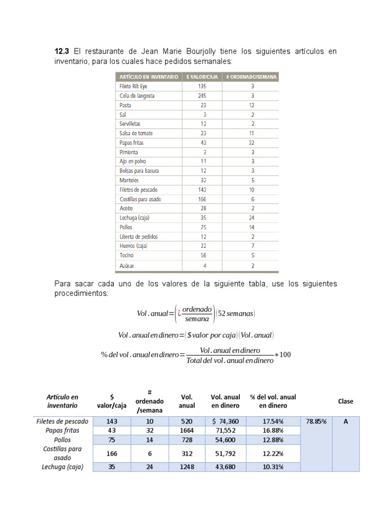 3 El restaurante de Jean Marie Bourjolly tiene los siguientes artículos en
