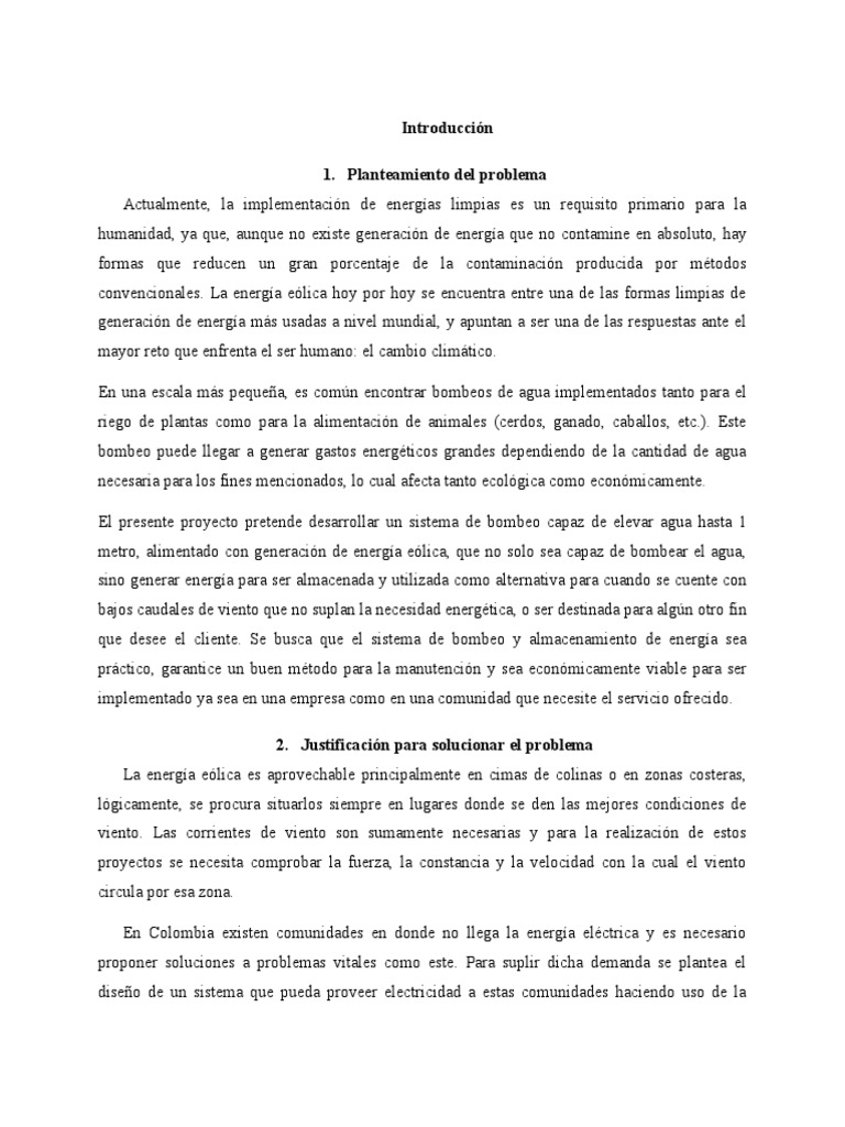 El presente proyecto pretende desarrollar un sistema de bombeo capaz de elevar agua hasta 1