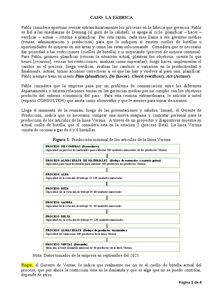 actual cuello de botella, que él considera está en la estación 2 (proceso Beta). La línea Verona