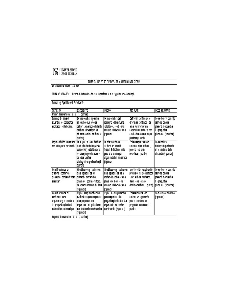 RÚBRICA DE FORO DE DEBATE Y ARGUMENTACIÓN 1