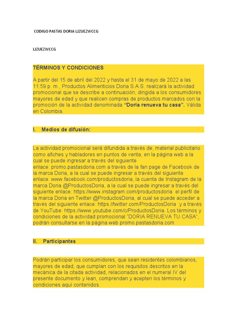 condiciones de la actividad promocional “DORIA RENUEVA TU CASA”,