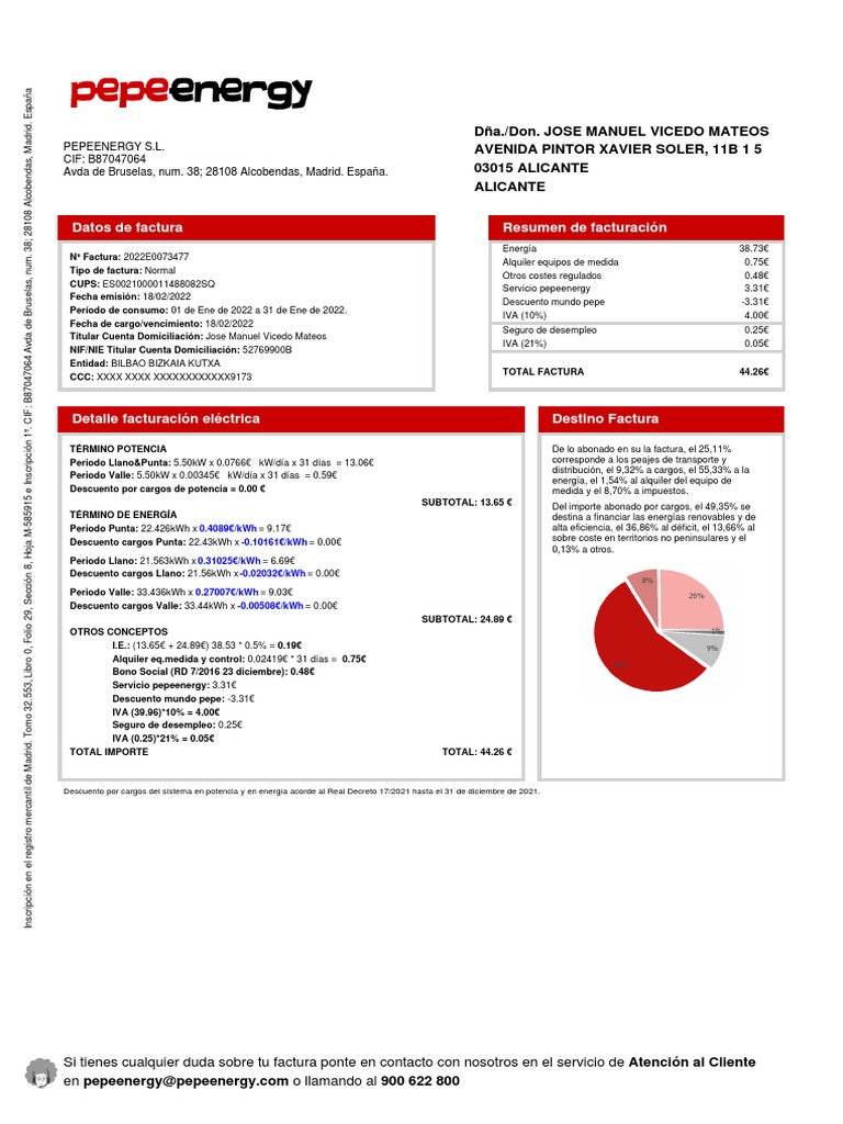 Teléfono de Atención al Cliente de Pepeenergy y Reclamaciones: 900 622 800 / reclamaciones@pepeenergy.com