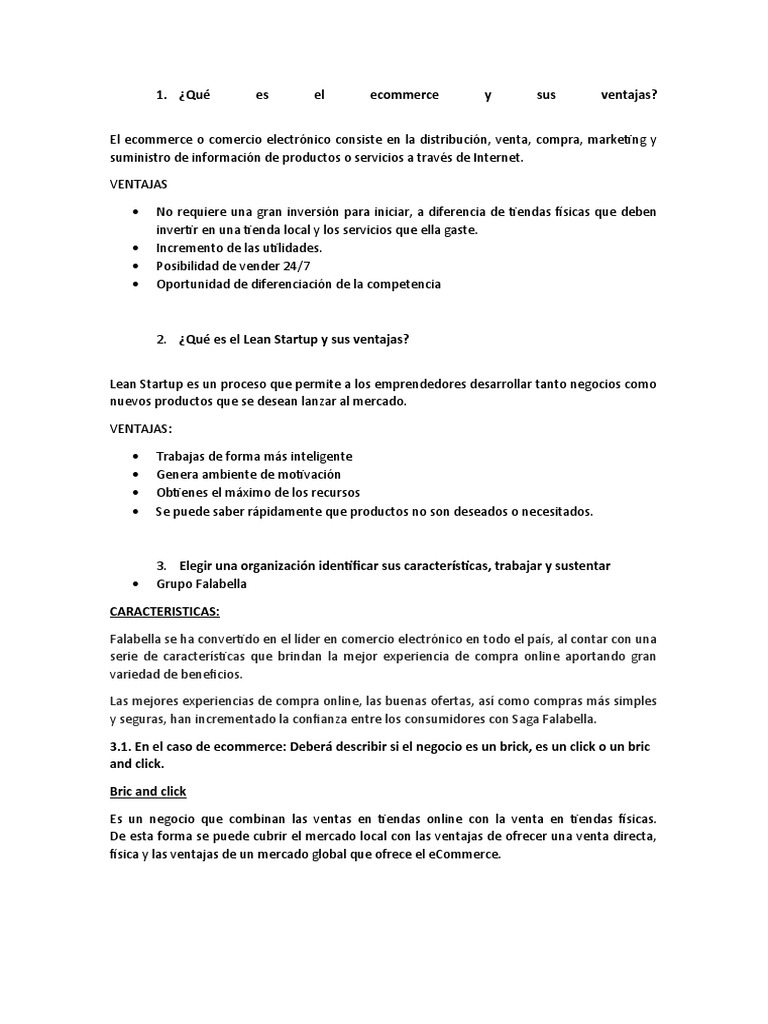 1 En el caso de e-commerce: Deberá describir si el negocio es un brick, es un click o