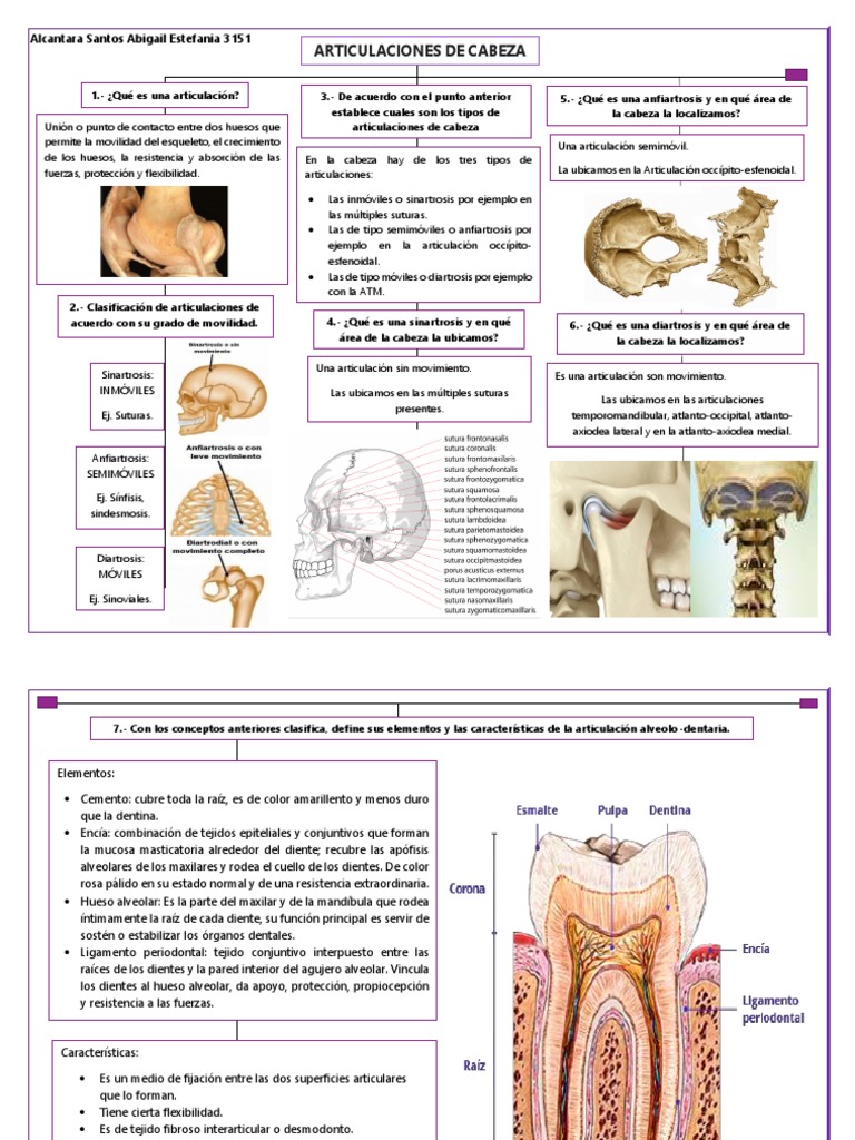 1.- ¿Qué es una articulación? 3.- De acuerdo con el punto anterior 5.- ¿Qué es una anfiartrosis y en qué área de