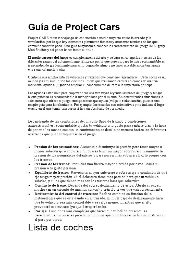 Contiene una amplia lista de vehículos y trazados que conviene ‘aprenderse’. Cada coche es un