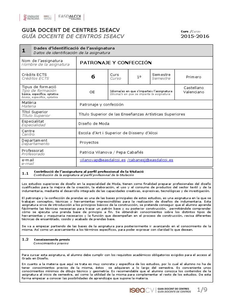 Guía Docente: Patronaje y Confección