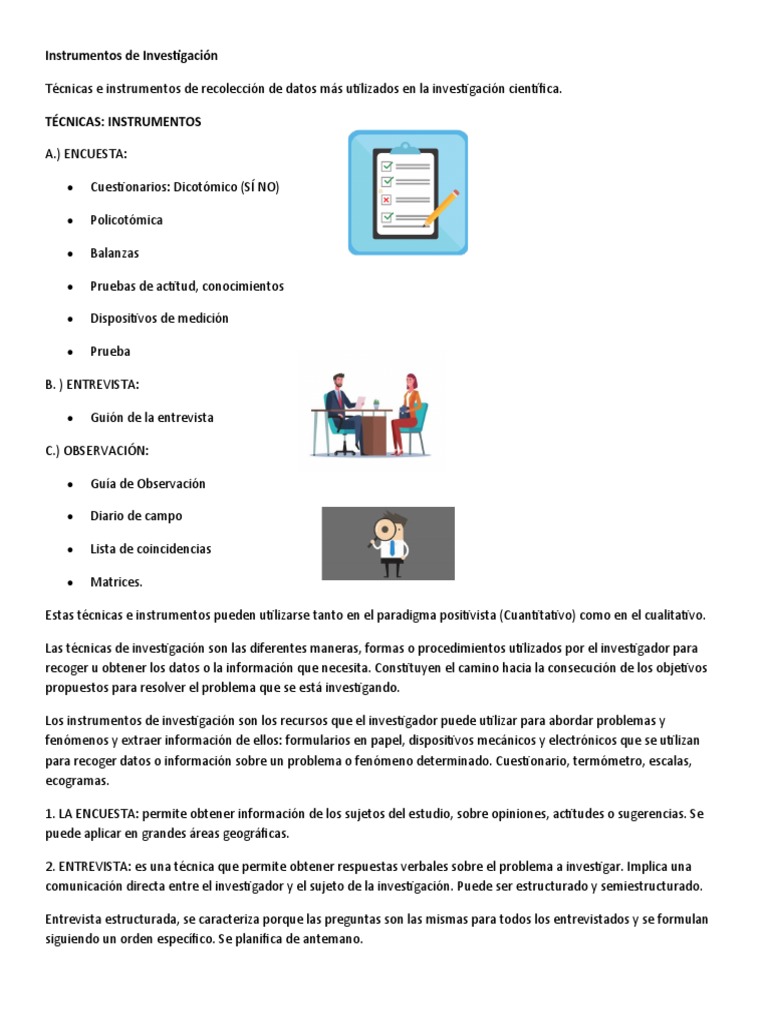 Los instrumentos de investigación son los recursos que el investigador puede utilizar para abordar problemas y