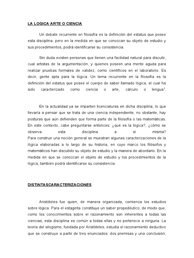 definición del estatus que posee el cuerpo de saber llamado lógica, el cual ha