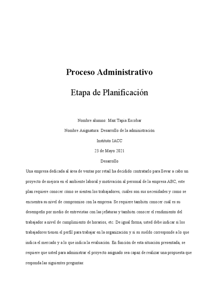 Nombre Asignatura: Desarrollo de la administración