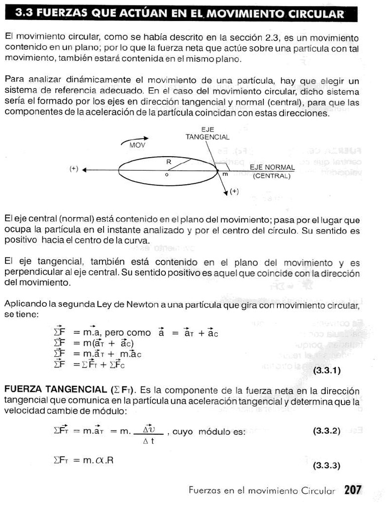 Fuerzas en el movimiento Circular 207La fuerza tangencial es nula cuando la velocidad angular es constante (MCU):