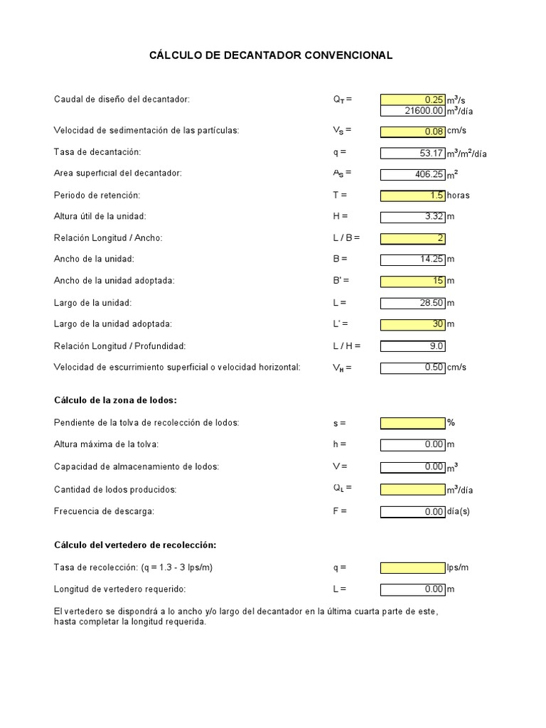 CÁLCULO DE DECANTADOR CONVENCIONAL