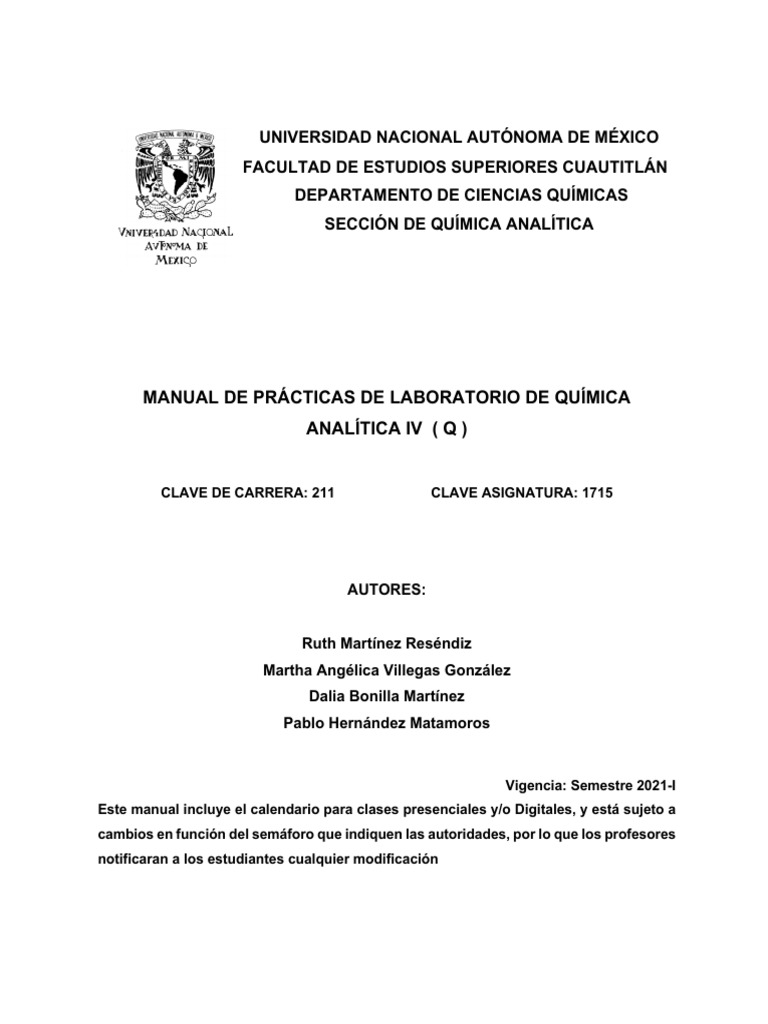 La asignatura de Química Analítica IV considera en sus cursos de laboratorio una serie