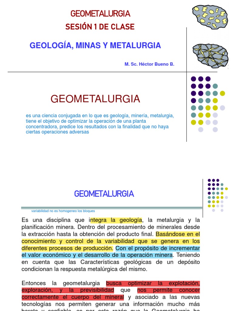 la geometalurgia es el centro de la geologia, de la metalurgia y de la mina